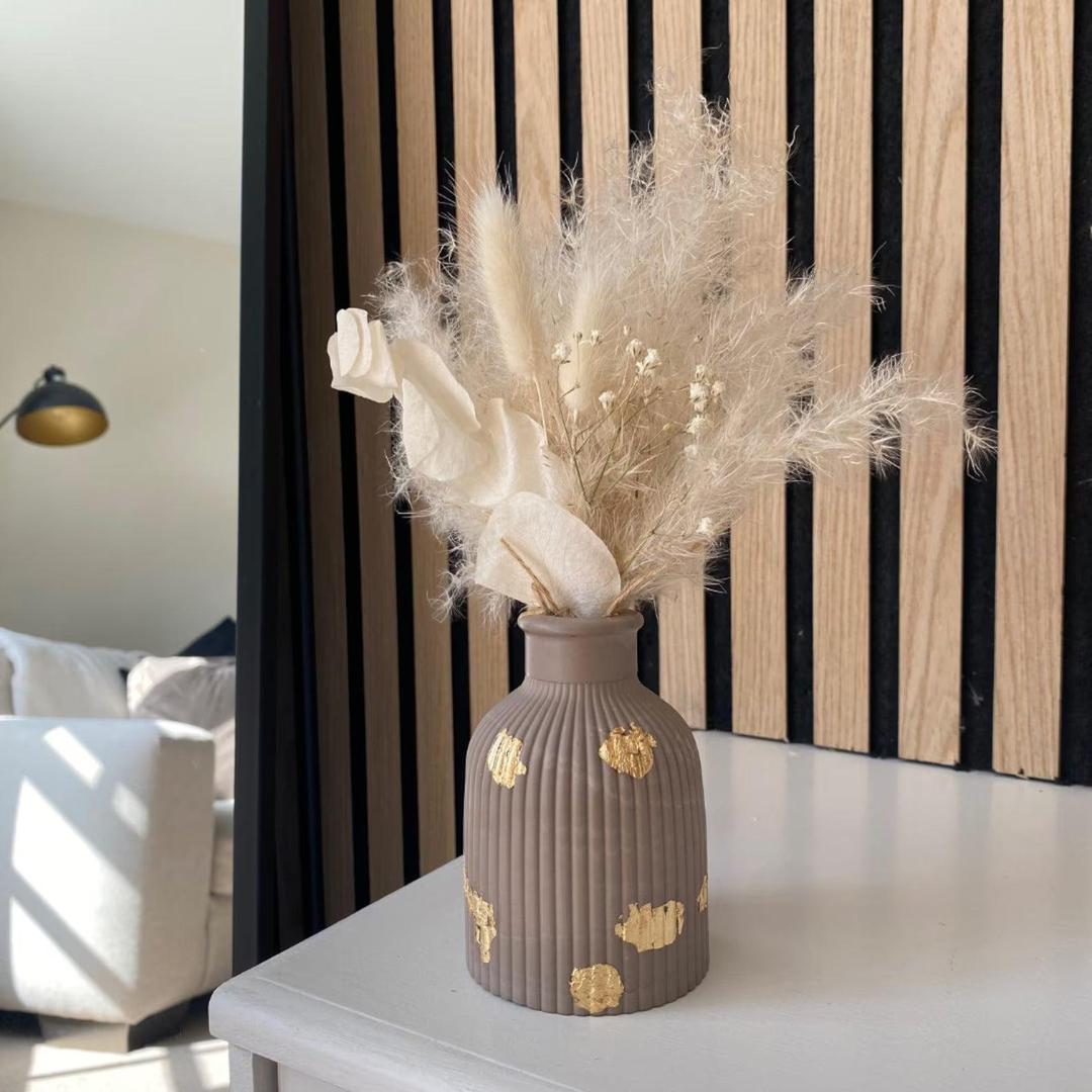 Mini Ribbed Concrete Flower Vase with Golden Flakes